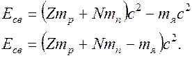 тех же нуклонов, связанных в ядре. Разность между этими энергиями есть энергия связи
