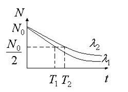 . Это время, в течение которого распадается половина начального числа ядер (рис.1). Период полураспада является относительной скоростью распада. Период полураспада