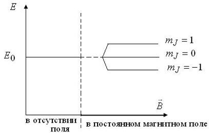 Зееман, помещая атомы в постоянное магнитное поле, обнаружил следующее явление. Пусть в отсутствии магнитного поля энергия атома равна