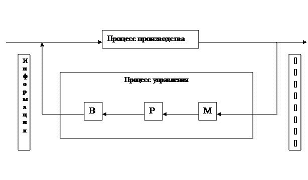 М – моделирование состояния объекта управления на основании поступившей от него информации; Р – разработка и принятие управленческих решений; В – организация выполнения принятых решений.