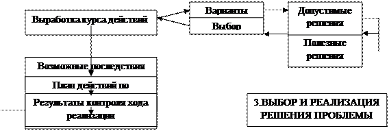 На стадии принятия решения осуществляются разработка и оценка альтернативных решений и курсов действий, проводимых на основе многовариантных расчетов; отбор критериев выбора оптимального решения; выбор и принятие наилучшего решения.
