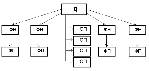 Д- директор; ФН - функциональный начальники; ФП – функциональные подразделения; ОП - подразделения основного производства.