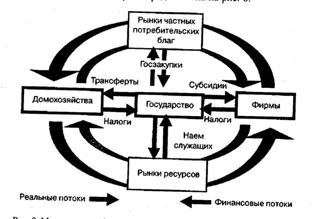 В конечном итоге государство как бы интегрируется в кругооборот и становится органической частью экономической деятельности. В этом и есть суть современной смешанной экономики. Кроме того, правительство осуществляет на рынках крупные закупки.