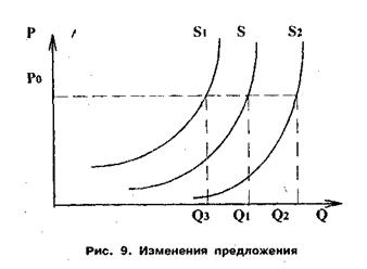 Изменение в предложении выражается в смещении кривой предложения: увеличение предложения смещает кривую вправо, уменьшение предложения смещает ее влево.