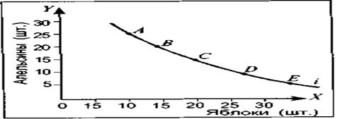 Кривая безразличия показывает все комбинации апельсинов и яблок, обладающие одинаковой полезностью. Поэтому потребителю безразлично, какую из комбинаций выбрать. Кривая i имеет отрицательный наклон, так как уменьшение потребления апельсинов сопровождается увеличением потребления яблок. Она является выпуклой, так как ее наклон, выражающий апельсинов яблоками, уменьшается.