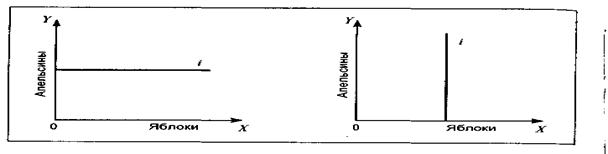 Рис. Карта безразличия – горизонтальная (потребитель не любит яблоки). Карта безразличия – вертикальная (потребитель не ест апельсины).