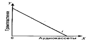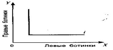 Рис. Карта безразличия абсолютно взаимодополняющих товаров (субститутов).