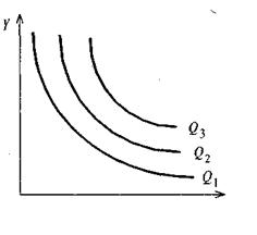 Так же как кривые безразличия, расположенные на разном расстоянии от начала координат, характеризуют разный уровень полезности для потребителя, так и изокванты дают информацию о разных уровнях выхода продукции.
