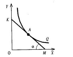 Если мы возьмем какую-либо точку на изокванте, например, точку А (рис.) и проведем к ней касательную КМ, то тангенс угла даст нам значение