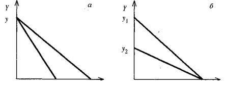 График изокосты в случае изменения цены на фактор х переместится по оси абсцисс из точки х1 в х% в соответствии с увеличением применения этого фактора в процессе производства (рис. а).