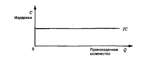 Понятие постоянных издержек может быть проиллюстрировано на графике (см. рис.). Отложим на оси абсцисс количество выпускаемой продукции (Q), а на оси ординат- издержки (С). Тогда прямая постоянных издержек, представляющая собой константу, будет параллельна оси абсцисс. Она обычно обозначается аббревиатурой FС.