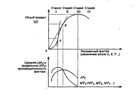 Предположим сначала, что только один из ресурсов является переменным фактором, тогда как остальные факторы используются в неизменном количестве, т. е. постоянны. Для того чтобы отразить влияние переменного фактора на производство, вводятся понятия совокупного (общего), среднего и предельного продукта.