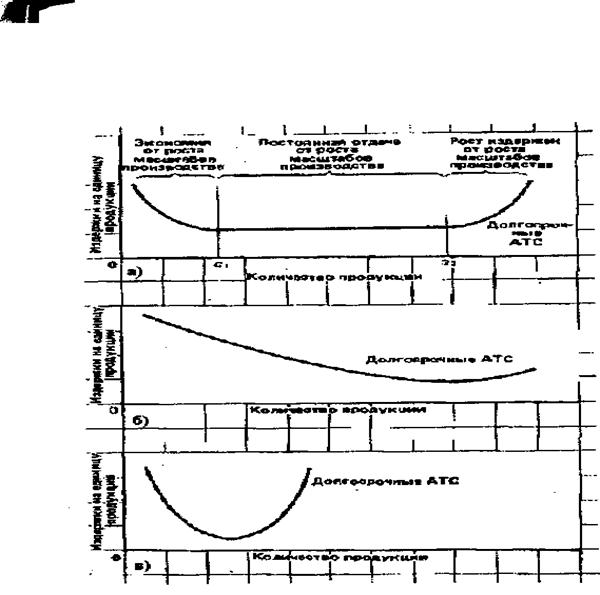 б) Если положительный эффект масштаба является относительно продолжительным, а отрицательный - отдаленным, то кривая АТС понижается на протяжении продолжительного отрезка горизонтальной оси.