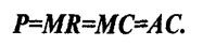 В более продолжительном периоде такое положение невозможно, некоторые фирмы будут вынуждены покинуть отрасль, что приведет к повышению цены спроса для оставшихся в отрасли фирм. Этот процесс будет продолжаться до тех пор, пока цена не будет покрывать средние издержки оставшихся в отрасли фирм, т. е. Р = АС. Если уход фирм из отрасли будет продолжаться и дальше, то рост цены приведет к превышению цены над средними издержками, оставшиеся фирмы будут получать экономическую прибыль, которая привлечет в отрасль новые фирмы. Приток новых фирм в отрасль обусловит увеличение предложения и снижение цены товара, прибыль фирм будет снижаться. Процесс притока новых фирм в отрасль прекращается, когда цена будет покрывать средние издержки, т.е. Р = АС. В условиях совершенной конкуренции в длительном периоде вход и выход фирм в отрасли определяется равенством цены величине средних издержек (гипотеза о нулевой, чистой экономической прибыли), т. е.