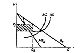 во-вторых, спрос на продукцию монополистического конкурента разлагается на две составляющие: спрос «своих» покупателей, предпочитающих именно данную разновидность продукта, и спрос «чужих» покупателей, приобретающих его продукцию только в том случае, когда цена на продукцию «их» фирмы кажется им слишком высокой.