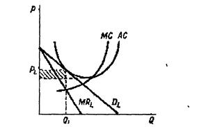 На каком участке своей кривой спроса монополистический конкурент выберет комбинацию Р,Q, определяется точкой Курно. При этом может оказаться, что у фирмы образуется монопольная прибыль, как в случае на рис.