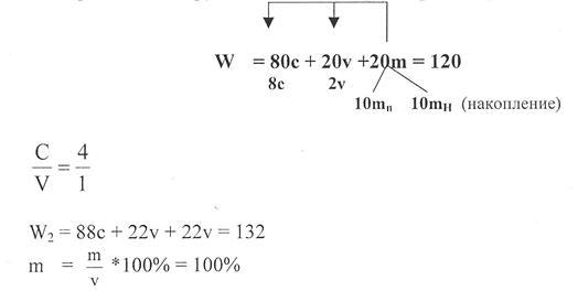 Капитал (К1)=100 т.д.е., утроился через 10 лет, К2=300 т.д.е. t= 10 лет. Средняя годовая прибавочная стоимость составила m=50 тыс.д.е.