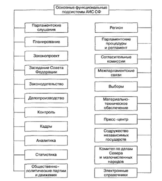 · информационные системы подразделений, установленные в комитетах, комиссиях, приемной Совета Федерации и в подразделениях Аппарата,