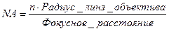 где NA — числовая апертура линз объектива: