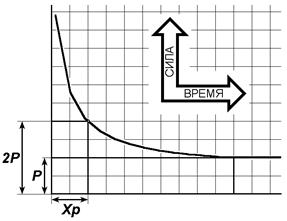 Кривые «силы-времени» (Гоорвега-Вейса-Лапика) хорошо характеризуют возбудимость объектов. Очевидно, возбудимость структуры 1 больше, чем 2. Для числовой характеристики экспериментально полученных зависимостей часто используют показатель называемый хронаксией (рис.).