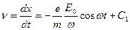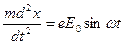 Рассмотрим случай, когда плотность газа мала. Здесь можно пренебречь столкновениями электрона с частицами газа. Пусть напряженность поля меняется по синусоидальному закону E=E0sinωt. Уравнение движения электрона имеет вид: