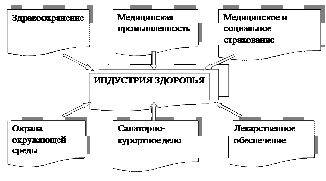 Индустрия здоровья - это функциональная многоотраслевая подсистема национального хозяйства, выражающая взаимосвязь, взаимодействие здравоохранения и сопряженных с ним отраслей и сфер деятельности по охране и укреплению здоровья людей. Формирование индустрии здоровья связано с переходом здравоохранения на использование современных технологий, которое существенно расширило технологические и функциональные связи здравоохранения с другими отраслями национальной экономики. Более полному вовлечению здравоохранения в экономический кругооборот способствует функционирование последнего на основе рыночных отношений.