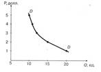 Если цены Р заединицу товара отложим по оси ординат, а количество товара Q, на которое предъявляется спрос, по оси абсцисс, то мы получим следующий график.