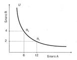 Кривая безразличия представляет множество комбинаций блага А и блага В, имеющих одинаковую, с точки зрения потребителя, полезность.