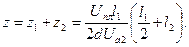 Как видно из рис.5.19, электрон, двигаясь между пластинами по параболе, к моменту выхода из пластин отклоняется от оси на некоторую величину z1 и далее движется к экрану по касательной к его криволинейной траектории. Отклонение электрона за время движения от пластин до экрана равно z2. Суммарное отклонение электрона от оси трубки равно:z=z1+z2. Величина z1 легко определяется из уравнения параболической траектории электрона: