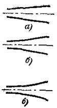 а — косо расставленные; б — наломанные; в — изогнутые.