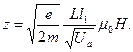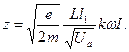 Выражая скорость υ0 электрона через напряжение на аноде, можно получить: