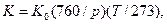 где р— давление (мм рт. ст.), а Т — абсолютная температура (К)
