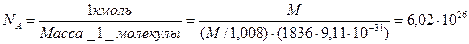 т.е. масса молекулы некоторого газа с молекулярным весом М равна: