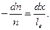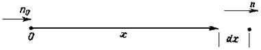 На рис.3.1 показано местоположение отдельного соударения частицы, взятое за точку отсчета. После прохождения расстояния х относительное число молекул, не претерпевших соударений, на длине dx уменьшится на dn/n из-за столкновений на длине dx. Таким образом, поскольку dn/n также есть вероятность, столкновений, происходящих на dx, то: