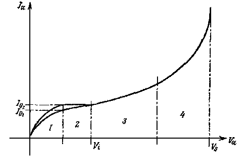 Соответствующая вольтамперная характеристика приведена на рис.4.1. На ней можно выделить четыре различные области.
