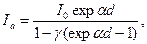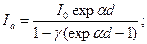 Следовательно, мы можем записать плотность тока положительных ионов на катоде в виде Ji=Je(exp αd – 1)