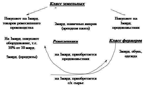 3) на полученные от земельных собственников деньги в размере 1 млрд. ливров приобретает продовольствие у класса фермеров, в результате чего реализуется ещё 1/5 часть сельскохозяйственных продуктов;