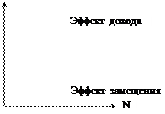 При этом на рынке труда действует эффект дохода и эффект замещения (см. рис. 7.5). Эффект замещения проявляется в том, что с ростом реальной ЗП увеличивается ценность труда и сокращается ценность свободного времени. При достижении определенного уровня дохода появляется стимул сокращать рабочее время, в результате чего NS будет сокращаться, или замедляться вследствие действия эффекта дохода.