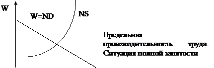 В результате взаимодействия NS и ND устанавливается равновесие на рынке труда, при следующем условии: