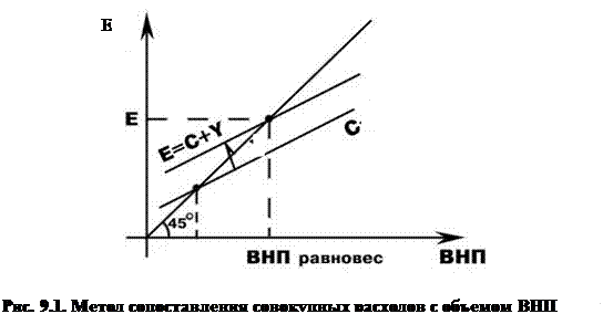 Графическая иллюстрация метода сопоставления совокупных расходов с объемом ВНП представлена на рис. 9.1.