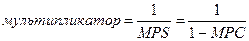 Таким образом, мультипликатор – это число, обратное предельной склонности к сбережению. Чем выше уровень МРS, тем большая часть средств сберегается и слабее эффект действия мультипликатора, и наоборот.