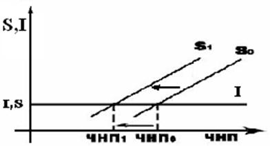 Как видно из рис. 9.5., рост сбережений с S0 до S1 уровня приводит к снижению ЧНП (ЧНП0 → ЧНП1).