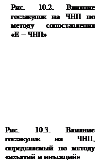 Государственные закупки выступают инструментом проведения фискальной политики только тогда, когда они финансируются не за счет налогов, а за счет роста бюджетного дефицита. Графически влияние роста G на объем ЧНП проиллюстрируем с помощью рис. 10.2 и 10.3