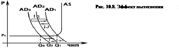 С другой стороны, повышение ставки ссудного процента приведет к снижению инвестиционного спроса (I). Таким образом, снижение Хn и I приведет к снижению совокупного спроса и цель фискальной политики будет не достигнута.