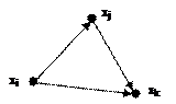 Граф, соответствующий транзитивному отношению (рис. 3.18), обладает следующими свойствами: для любой пары ориентированных ребер (дуг) графа (xi, xj), (xj, xk) имеется замыкающая дуга (xi, xk). Можно сказать, что в графе, который соответствует транзитивному отношению, для каждого пути S(xi, xk) имеется дуга (xi, xk) (рис.3.19).