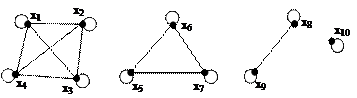 Графы, соответствующие отношению эквивалентности, представляют собой совокупность компонент связности (для каждого класса эквивалентности своя компонента) несвязного графа. Каждая компонента несвязного графа должна быть полным неориентированным графом с петлями (рис. 3.20).