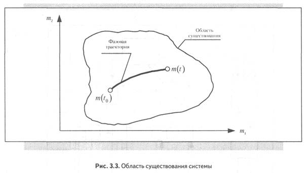Вследствие этого всякая система характеризуется некоторой областью значений фазовых координат, в пределах которой можно говорить о системе как о едином целом. Такая область называется областью существования системы или областью возможных траекторий. Для двухмерного случая ситуация показана на рис. 3.3.
