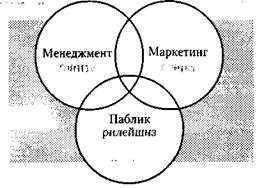 Схема показывает наличие глубокого взаимопроникновения и взаимосвязи между паблик рилейшнз, маркетингом и менеджментом и вместе с тем отсутствие иерархических отношений подчиненности между ними.