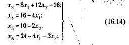 Подставляя полученные значения x1 = 4 и x2 = 0 в уравнения (16.14), определим величины остальных переменных, составляющих оптимальный план: