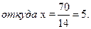 Из последнего варианта следует: для того чтобы у был целым числом, разность 100 – 14х должна быть кратна 5; для этого, в свою очередь, произведение 14х должно быть кратным 5 и меньшим, чем 100.